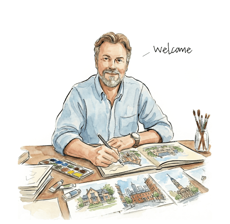 Jeffrey B is an architect and architectural illustrator who does watercolor illustrations of landmarks and places throughout North America. Please choose a location to see what prints might be best suited for your gift shop and if you would like to see other landmarks added please just let us know. All prices are wholesale and include shipping.